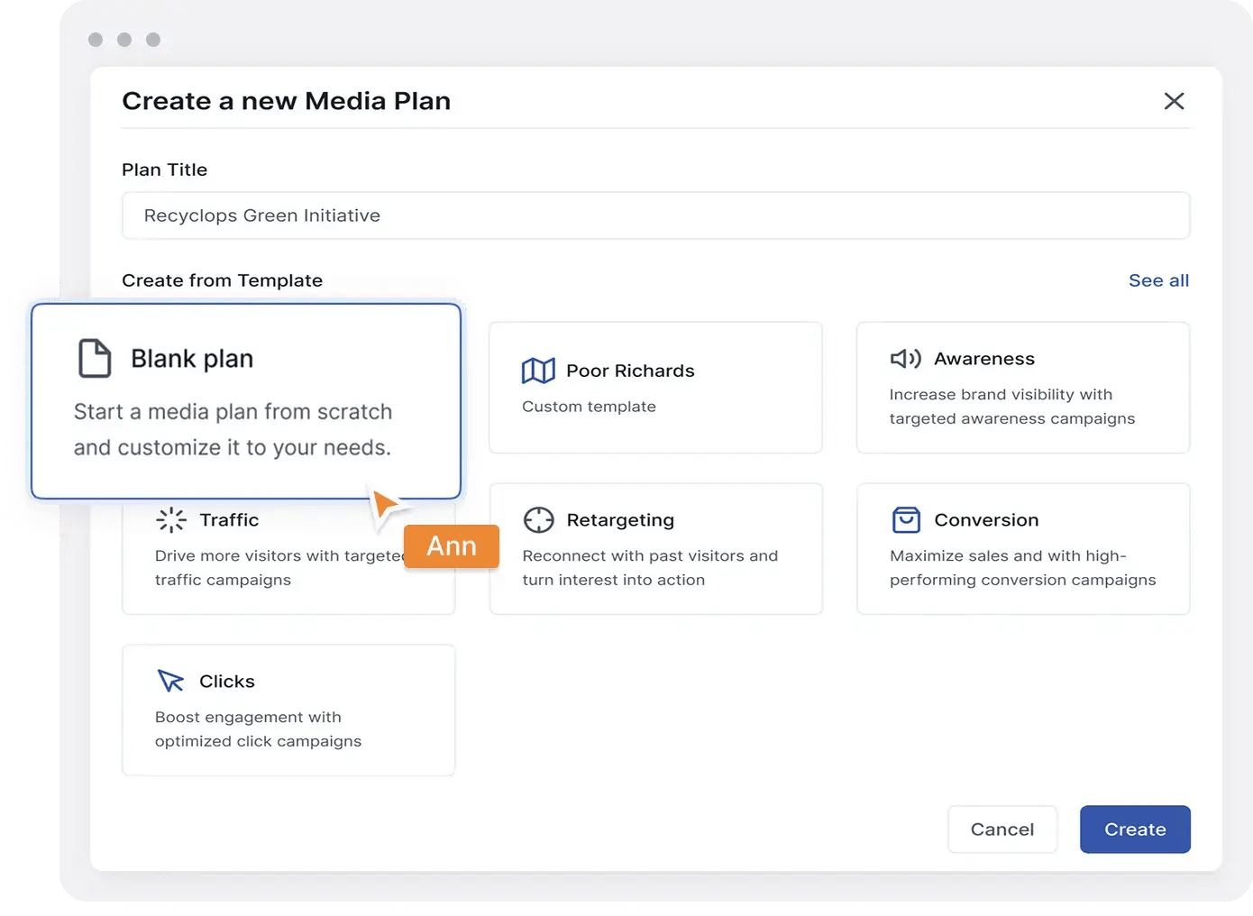 Media Plans help agencies structure budgets, KPIs, fees, and taxes in clear templates. Add channels, costs, and expected results, then customize to client needs. Approved plans export to finance-ready Excel in one click, eliminating version chaos and giving every stakeholder clarity.